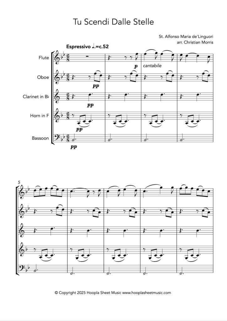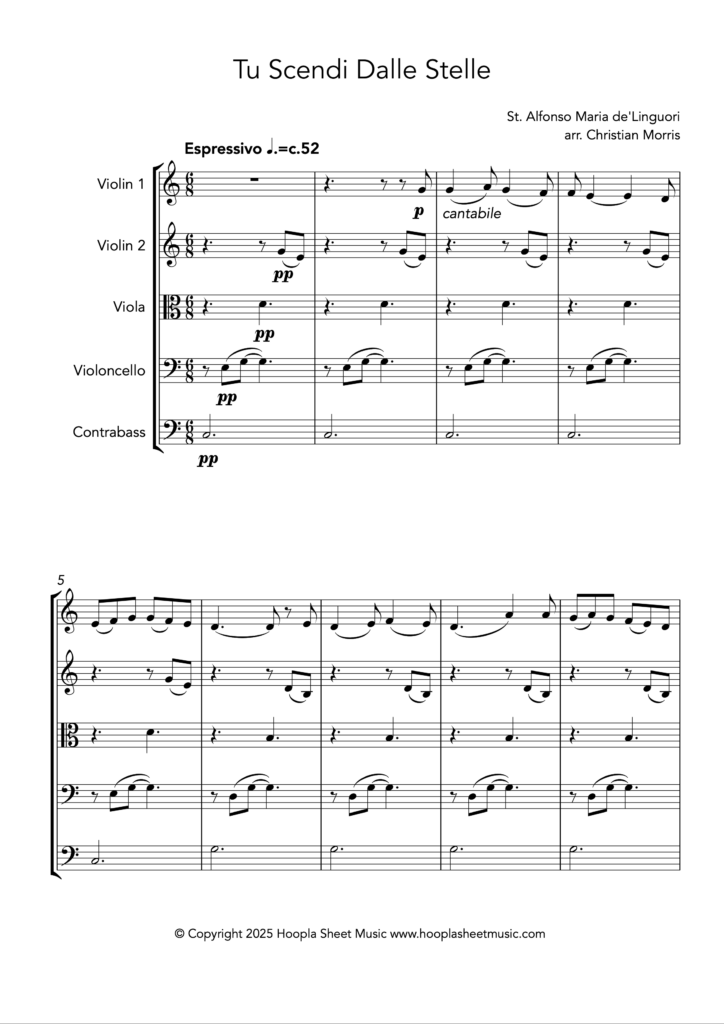A lovingly made arrangement of the lyrical Italian carol. The melody and original lyrics were written in 1732 by priest Alphonsus Liguori. The piece was popularised in the twentieth century by tenor Sergio Franchi and, more recently, Andrea Bocelli.